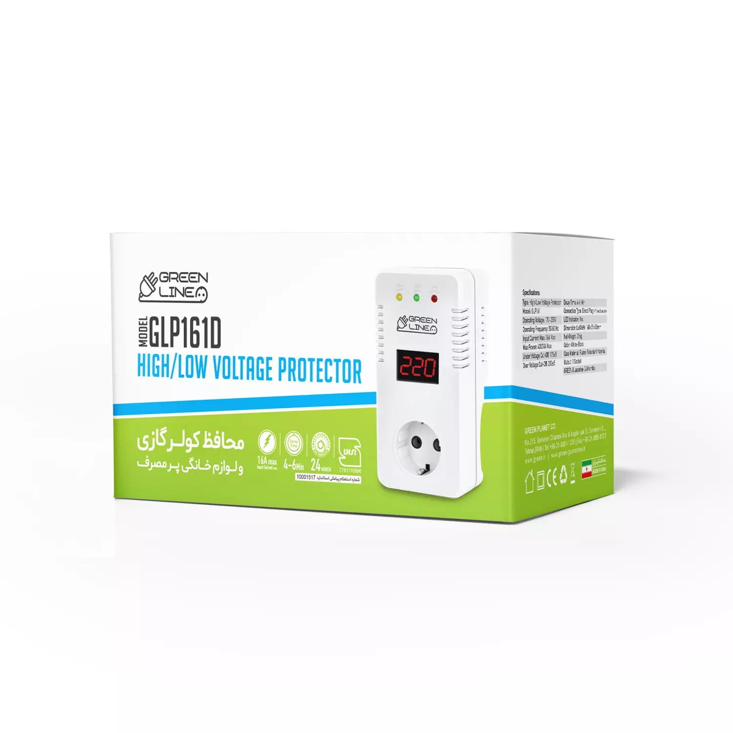 گارانتی محافظ ولتاژ دیجیتال کولرگازی GLP161D برند GREEN