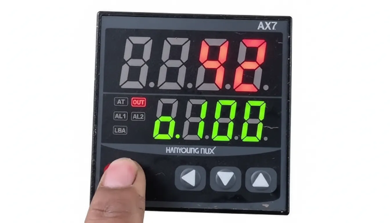 برخلاف مدل‌های ارزان‌قیمت بازار، نمایشگر دما در سری AX7 هانیانگ از نوع دیجیتال با کنتراست بالاست. این نمایشگر دو ردیفه بوده که ردیف بالا دمای فعلی (PV) و ردیف پایین دمای تنظیمی (SV) را با دو رنگ متفاوت نشان می‌دهد. این تفکیک رنگی باعث می‌شود اپراتور در کمترین زمان ممکن تفاوت دمای واقعی و مطلوب را درک کند.